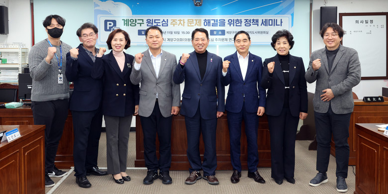 [계양구 세계타임즈=심하린 기자] 인천 계양구의회 원도심 주차문제 연구회(대표의원 조덕제)는 지난 10일 계양구의회 5층 상임위원실에서 “계양구 원도심 주차 문제 해결을 위한 정책 세미나”를 개최했다.