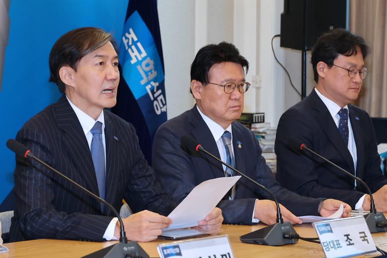 조국혁신당 조국 대표가 5일 오전 국회에서 열린 최고위원회의에서 발언하고 있다. 2024.8.5