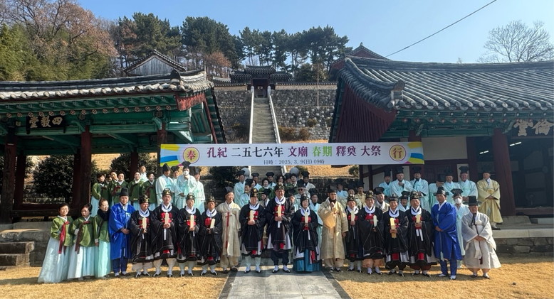 [진주시 세계타임즈=최성룡 기자] 진주향교(전교 고영옥)는 공기 2576주년을 맞아 9일 오전 9시 진주향교 대성전에서 공자를 비롯한 유교 성현들에게 제향을 올리는 춘기 석전을 봉행했다. 이날 행사에는 지역 유림과 시민 등 150여 명이 참석해 전통 유교 문화를 계승하는 뜻깊은 자리를 함께했다.