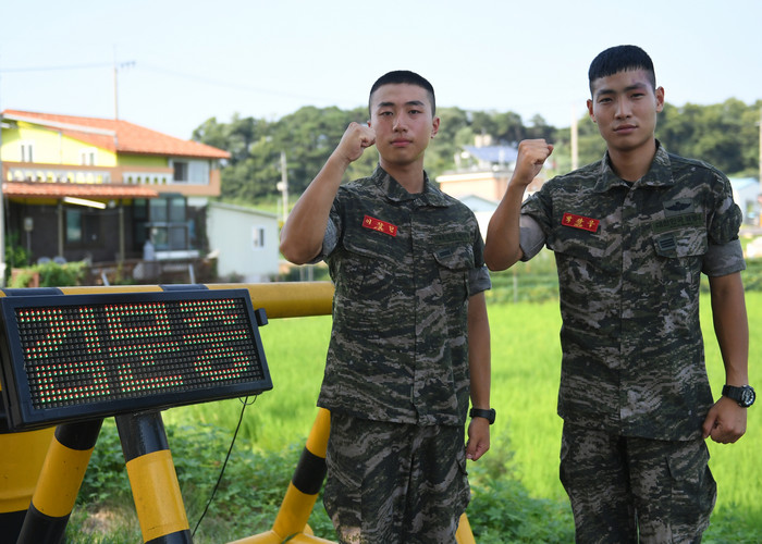 (사진 : 7월 28일 토요일 강화군 송해면 당산리 지역에서 검문소 근무 중 쓰러진 노인을 구한 이창헌 일병(왼쪽) 과 박창우 상병(오른쪽) <사진제공=김성규 하사>)