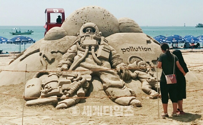 또한 모래조각가 최지훈씨와 바다 환경 보호를 주제로 한 모래 조형 작품을 부산 송정 해수욕장에 전시했다. 공해로 오염된 미래 지구환경에서 방독면을 끼고 살아가는 인간의 안타까운 모습을 3D로 제작해 더욱 입체적이고 현실감 있게 표현하며 환경파괴에 대한 경고의 메시지를 전달했다.