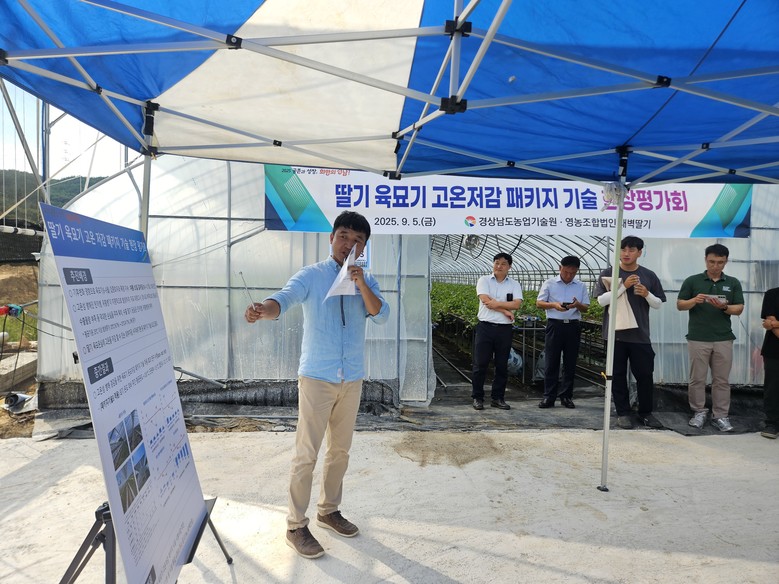 - 패키지 적용 온실, 외부보다 1℃ 상승, 고온 피해 감소 기대 [세계타임즈=경남 최성룡 기자] 경남도농업기술원(원장 정찬식)은 5일 사천시 딸기 육묘 온실에서 도내 딸기 농가와 관계 공무원 등 20여 명이 참석한 가운데, ‘이상고온 대응 딸기 육묘기 고온 저감 패키지 기술 현장 평가회’를 개최했다고 밝혔다.