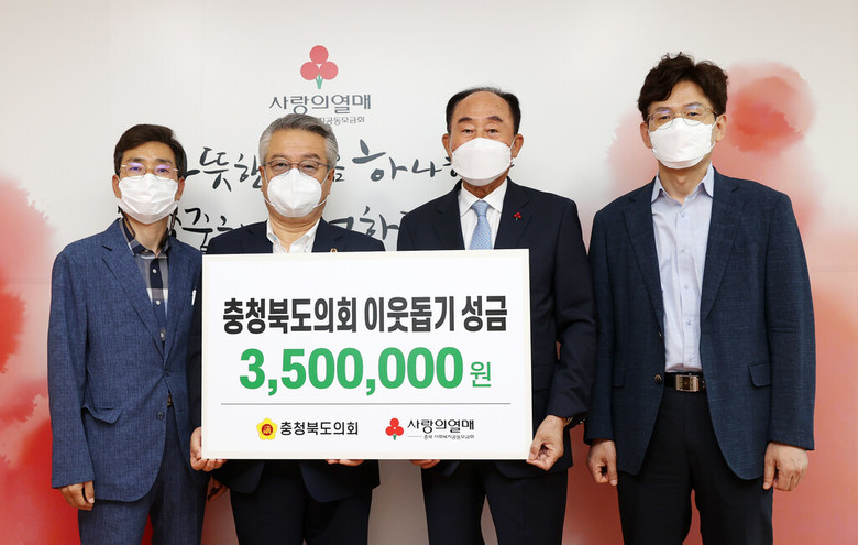 노영수 회장도 “지속적인 기부를 통해 지역민과 함께 해 주신 충청북도의회에 감사드린다.”며 “전달해 주신 기부금은 주변에 어려운 이웃과 소외계층 등에게 큰 도움이 될 것”이라고 화답했다.