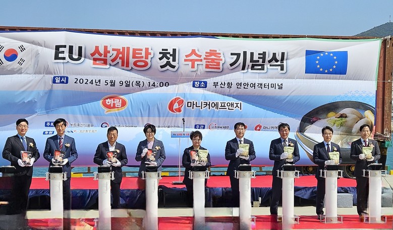 [세계타임즈 = 이현진 기자] 한국농수산식품유통공사(사장 김춘진)는 9일 부산항 연안 터미널에서 열린 EU 수출 삼계탕 첫 선적 행사에 참여하고, 삼계탕 등 국산 열처리 가금육의 유럽 시장 공략을 위해 홍보·판촉 등 다양한 마케팅 사업 추진에 나선다.