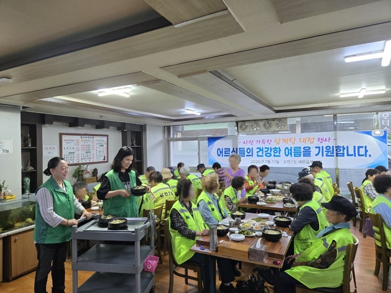 [중구 세계타임즈=이채봉 기자] 대전 중구 유천2동(동장 구순서)은 17일 새마을부녀회(회장 김재경)가 노인일자리 참여 어르신 80명을 대상으로 삼계탕을 대접했다고 밝혔다.