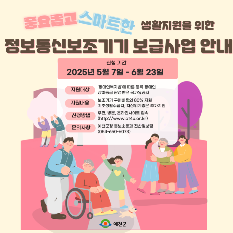 [예천군 세계타임즈=한윤석 기자] 예천군(군수 김학동)은 정보 취약계층의 디지털 접근성 향상을 위해 2025년 정보통신보조기기 보급사업을 시행한다.