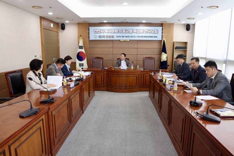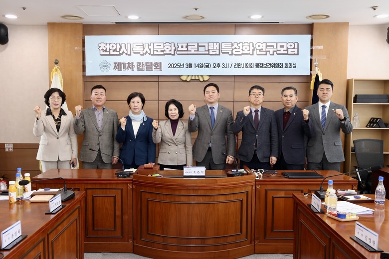 [천안시 세계타임즈=이현진 기자] 천안시의회(의장 김행금)는 ‘천안시 독서문화 프로그램 특성화 연구모임’(대표의원 조은석)이 3월 14일 제1차 간담회를 열고 동참의원들과 연구방향 등을 논의했다고 밝혔다.