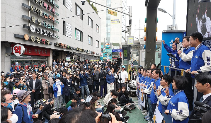 盧 사위 곽상언 지지유세에 김미화도 민주당 '피날레 유세'는 용산
