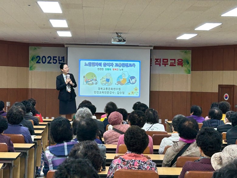 특히 교통안전을 위해 경상북도 교통문화연수원 김수정 강사를 초빙하여 교통안전에 관한 유의 사항과 고령 운전자 교통사고 사례 및 면허증 반납제도에 대해 중점적으로 교육했다.