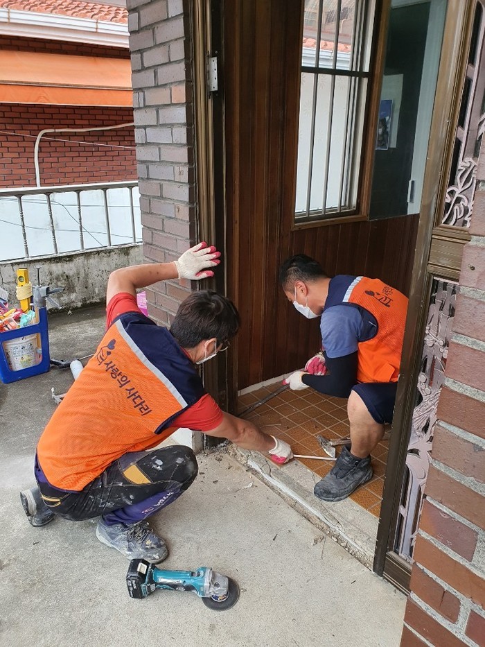 박문수 시설장은 “오늘 서구자원봉사센터와 사랑의 사다리 밴드 봉사단체에서 노후된 현관출입문을 교체해주어서 큰 힘과 위안이 된다.”면서 감사함을 전했다.
