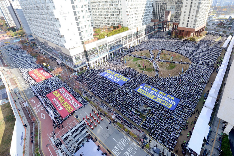 | ▲ 지난해 11월 15일 신천지예수교회 성도들이 경기도청에서 ‘편파적인 종교탄압 규탄 결의대회’를 열고 있는 모습이다 [사진 제공 = 신천지예수교회] |