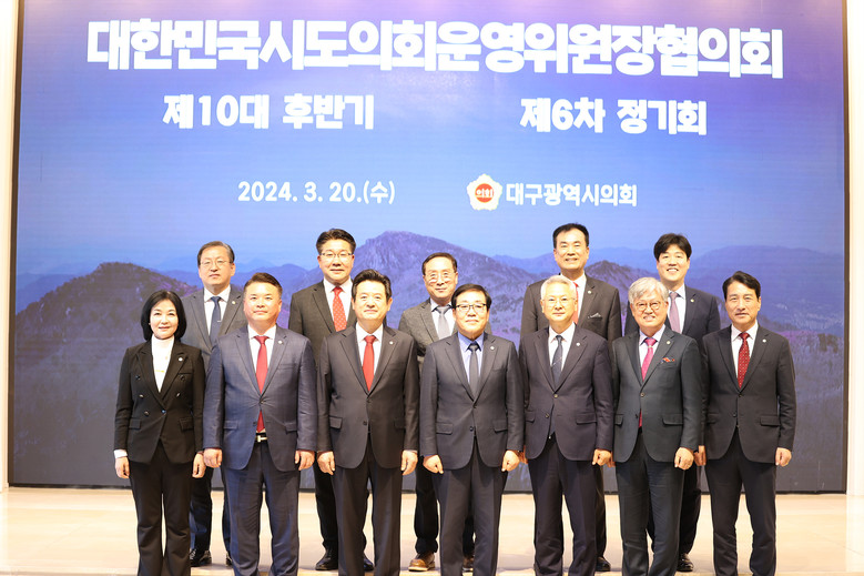 [대구 세계타임즈=한윤석 기자] 제10대 후반기 대한민국시도의회운영위원장협의회(회장 이칠구 경북 운영위원장, 부회장 전경원 대구 운영위원장) 제6차 정기회가 20일 호텔 수성에서 개최되었다.