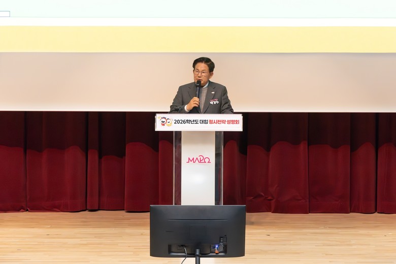 [마포구 세계타임즈=이장성 기자] 박강수 마포구청장은 12월 14일 마포구청에서 열린 ‘2026학년도 정시 전략 설명회 및 1:1 진학 컨설팅’ 현장을 찾아 수험생과 학부모를 격려했다.