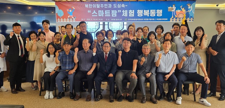 [동구 세계타임즈=이채봉 기자] 민주평화통일자문회의 대전동구협의회는 19일 동구 삼성동에 위치한 대전팜 둥구나무에서 관내 북한이탈주민과 자문위원 30여 명이 참석한 가운데 북한이탈주민과 도심 속 스마트팜 체험, 행복동행 행사를 개최했다.