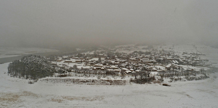 동물들이 깨어나서 꿈틀한다는 경칩(3.6)을 지난 봄의 길목에 내린 눈으로 안동 하회마을과 도산서원, 해상촬영장 등이 순백의 하얀색 옷으로 갈아입었다. 순백의 하얀 눈은 마치 흰옷을 입고 봄을 시샘하는 눈꽃 향연이 펼쳐졌다.