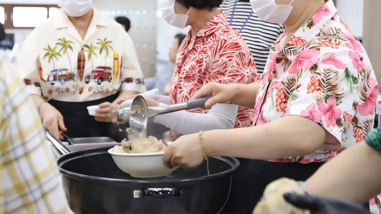지난 12일 신천지 익산교회에서 부녀회원들이 삼계탕을 정성껏 준비해 대접하는 모습