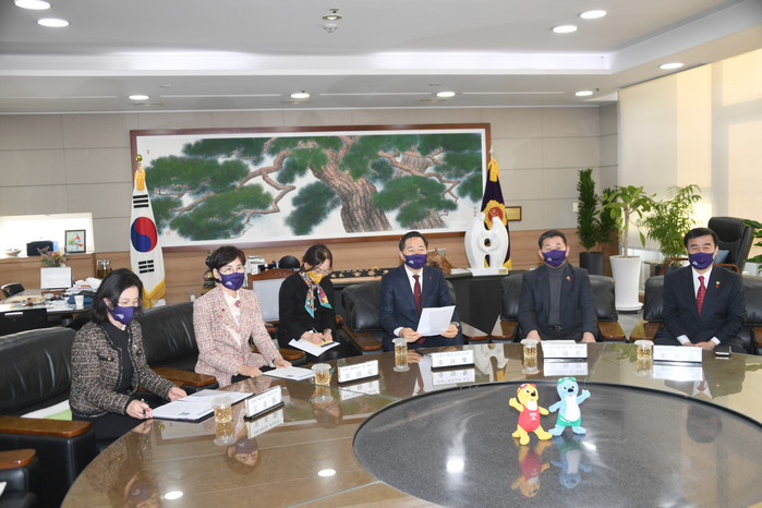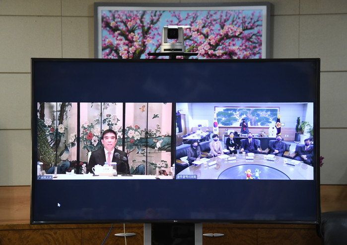영상회의는 김용집 의장과 스치주 주임의 인사말씀과 양 도시 간 의회소개, 2021년 업무추진계획 공유 등의 순으로 진행됐다.