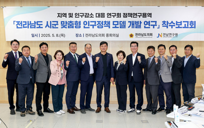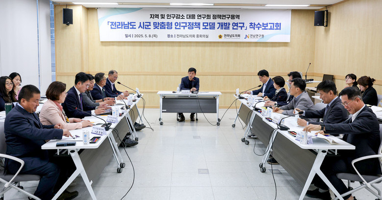 [전남 세계타임즈=우덕현 기자] 전라남도의회 ‘지역 및 인구감소 대응 연구회(대표의원 이현창)는 지난 5월 8일 도의회 중회의실에서 ‘전라남도 시군 맞춤형 인구정책 모델 개발 연구’ 연구용역 착수보고회를 갖고 본격적인 첫걸음을 내디뎠다.