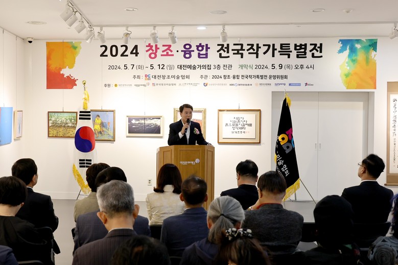 [대전 세계타임즈=이채봉 기자] 대전시의회 이상래 의장은 9일 대전예술가의집에서 열린 ‘2024 창조·융합 전국작가 특별전 개막식’에 참석해 전시 준비에 노고를 아끼지 않은 대전창조미술협회 백향기 회장을 비롯한 관계자들을 격려했다.