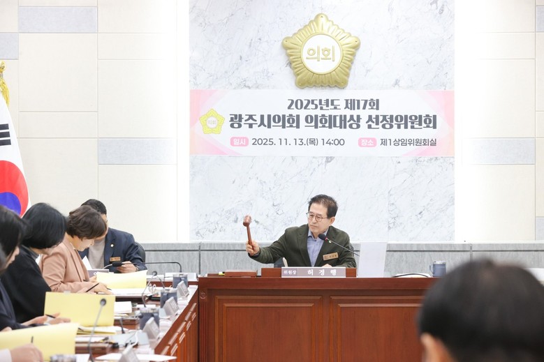 [광주시 세계타임즈=송민수 기자] 광주시의회(의장 허경행)는 13일, 광주시의회 의원과 외부 위원 등 13명으로 구성된 「2025년도 제17회 광주시의회 의회대상 선정위원회」 회의를 개최하고 수상자를 선정했다고 밝혔다.