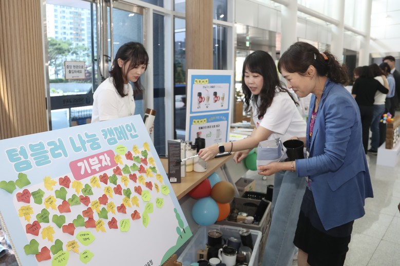 캠페인은 두 가지 프로그램으로 구성됐다. 첫 번째는 ‘텀블러 나눔 캠페인’으로, 직원들로부터 사용하지 않는 텀블러를 기부받아 필요한 사람에게 나눠주고, 일부는 ‘아름다운가게’와 자원순환업체에 전달해 재사용되도록 했다. 기부자에게는 추첨 상품을 제공해 참여를 독려했다.