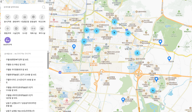 이는 최근 급증하고 있는 개인형 이동장치(PM) 무단 방치 문제를 해결하고 이용자의 편의를 높이기 위한 것으로, 남동구 홈페이지 메인화면 분야별 정보의 ‘지도로 보는 남동구’를 클릭하면 주차구역 위치를 편리하게 확인할 수 있다.