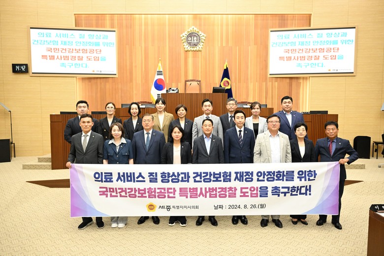 한편, 세종시의회는 ‘국민건강보험공단 특별사법경찰도입 촉구 결의안’을 국회의장과 국무총리, 보건복지부, 법무부, 국민건강보험공단 등에 이송할 예정이다.