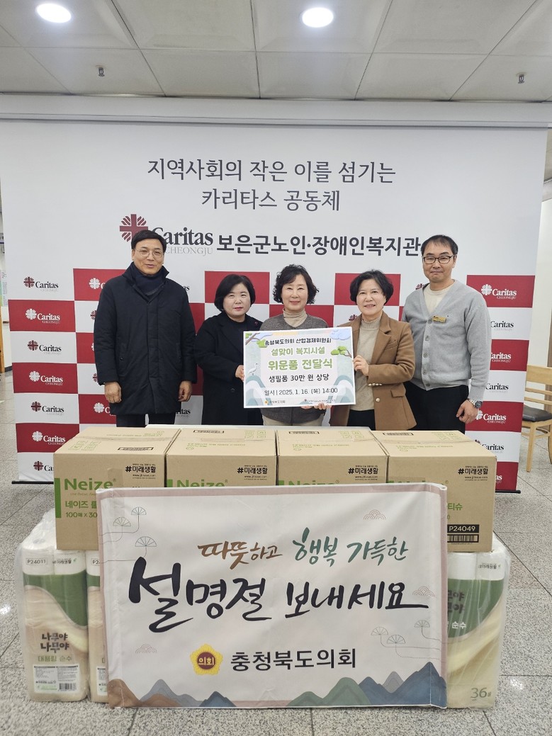 위원회를 대표해 참석한 박경숙 의원(보은)은 “명절을 앞두고 소외되기 쉬운 이웃들에게 온정을 나눌 수 있어 기쁘다”며 “앞으로 취약계층을 위한 복지 정책을 적극 지원해 모두가 함께하는 행복한 지역사회를 만들겠다”고 말했다.