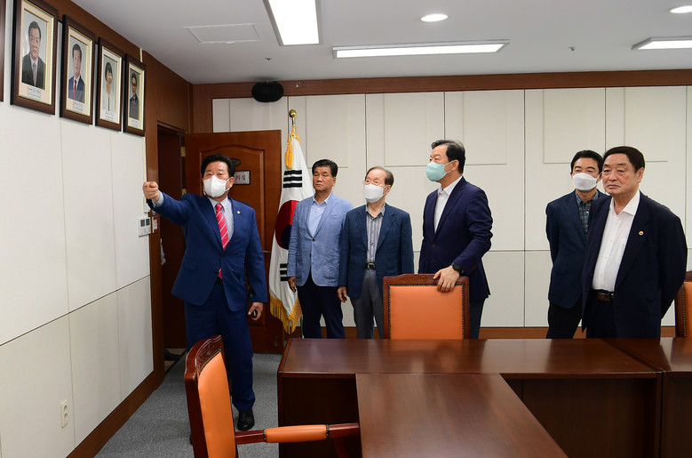 [경남 세계타임즈=최성룡 기자] 경상남도의회 김진부 의장은 7월 15일 오전 11시에 의장집무실에서 역대 의장들을 초청해 제12대 도의회 전반기 의정 기본방향인 “도민만을 위한 의회다운 의회”구현을 위해 다양한 조언을 구했다.