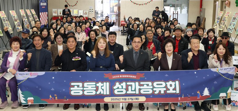 [동구 세계타임즈=이채봉 기자] 대전 동구(구청장 박희조)는 27일 중앙시장 이벤트홀에서 대전 동구 공동체지원센터(센터장 남정혜) 주관으로, ‘2025년 마을공동체 성과공유회’를 성황리에 개최했다고 밝혔다.