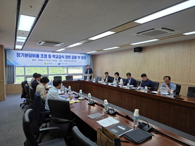 [전남 세계타임즈=우덕현 기자] 전라남도교육청(교육감 김대중)과 전라남도청(도지사 김영록)은 4일 전남도청에서 ‘학교급식 관련 공동 TF 회의’를 열고, 지속가능한 학교급식 운영 체계 구축을 위한 논의를 진행했다.