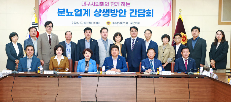 이날 간담회에는 시의원, 구⋅군의원, 대구시 수질개선과 및 구⋅군 관계자, (사)대구환경청화협회 회장 등 30여 명이 참석했다. 김재용 경제환경위원장은 “지역 분뇨업계의 위기는 곧 시민들이 누려야 할 깨끗한 환경과 위생에 대한 위협과 직결된다”면서, “공익사업이지만 기피업종인 분뇨업계를 위한 정책 마련이 필요하다는 공감대가 형성돼 민⋅관⋅정이 함께 모인 뜻깊은 자리를 마련하게 되었다”고 말했다.