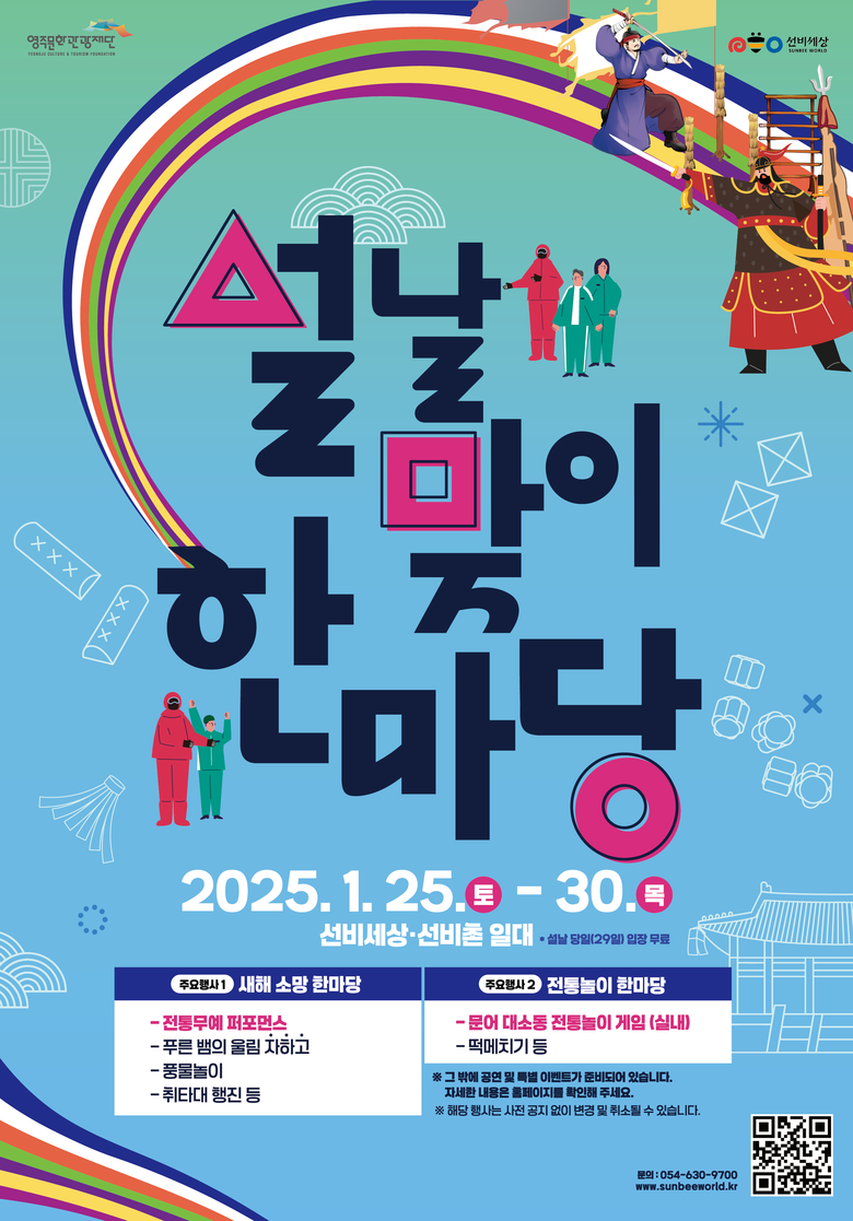 ‘문어대소동 전통놀이게임’과 새해 소망을 담은 퍼레이드로 가득한 명절 [영주시 세계타임즈=한윤석 기자] 영주문화관광재단(이하 재단)은 2025년 설을 맞아 선비세상과 선비촌에서 오는 1월 25일부터 30일까지 6일간 ‘설날맞이 한마당’이 펼쳐진다. 이번 행사는 명절을 맞아 가족과 함께 즐길 수 있는 다양한 프로그램을 통해 방문객들에게 특별한 경험을 선사할 예정이다.