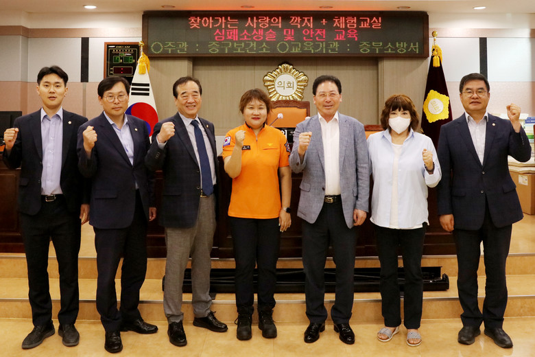 심폐소생술은 긴급 상황에서 생명을 구하는 데 핵심적인 역할을 하는 기술로, 비상 상황에서 적절하게 대처하기 위해 평상시에 많은 교육과 실습을 경험해 보는 것이 좋다. 따라서 교육은 경험이 풍부한 중부소방서 응급대원의 주도하에 실시되었으며, 의원들은 이론과 실습을 통해 심폐소생술에 대한 이해와 기술을 습득했다.