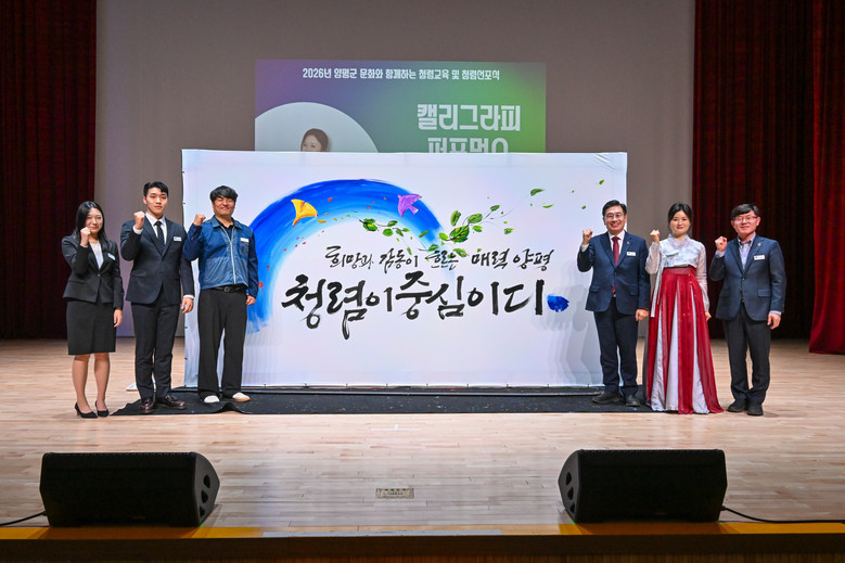 청렴선포식은 공직자 대표 2인의 청렴선언문 낭독을 시작으로 공직사회의 청렴 실천 의지를 공유하고 반부패 개선 노력에 동참할 것을 약속하는 자리로 진행됐다. 이어 양평군의 청렴 의지를 담은 이화선 작가의 캘리그래피 퍼포먼스가 펼쳐졌으며, 전진선 양평군수와 김종배 공무원노조 양평군지부장, 직원대표(박세영, 박정연)가 함께 장붓을 들고 마무리 점을 찍으며 선포식을 마쳤다.
