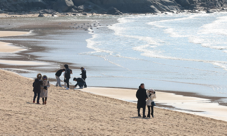 [인천 세계타임즈 = 심하린 기자] 추위가 이어진 23일 인천 중구 을왕리해수욕장을 찾은 시민들이 찬바람 속에서 해변을 걷고 있다. 2025.2.23