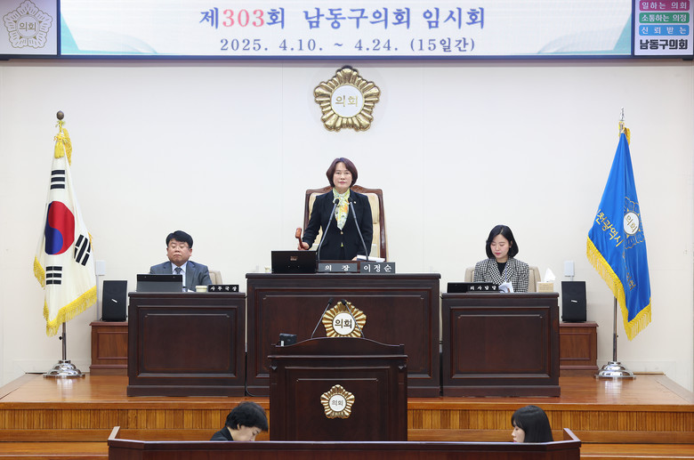 [남동구 세계타임즈=심하린 기자] 남동구의회(의장 이정순)가 10일 제303회 임시회 제1차 본회의를 개회하고 오는 24일까지 15일간의 의사일정에 돌입했다.