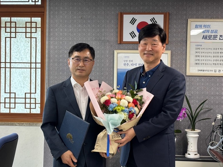(재)전주푸드통합지원센터 이사장인 윤동욱 부시장은 2일 전주푸드통합지원센터를 이끌어갈 김종범 신임 센터장에게 임명장을 수여했다.