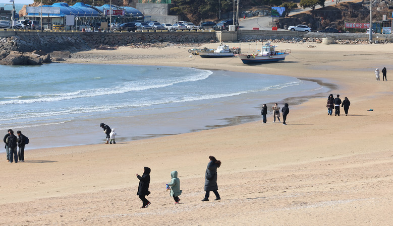 [인천 세계타임즈 = 심하린 기자] 추위가 이어진 23일 인천 중구 을왕리해수욕장을 찾은 시민들이 찬바람 속에서 해변을 걷고 있다. 2025.2.23
