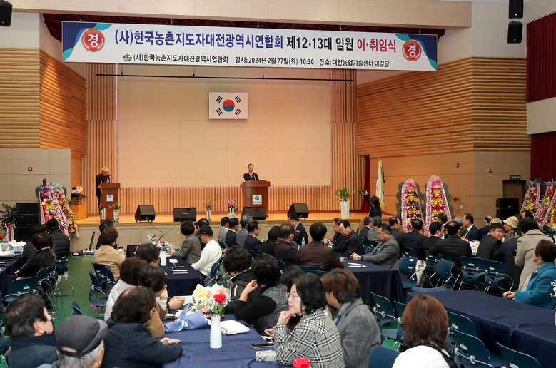 [대전 세계타임즈=이채봉 기자] 대전시의회 조원휘 부의장은 27일 농업기술센터 대강당에서 개최된 ‘한국농촌지도자 대전광역시연합회 제12‧13대 임원 이‧취임식’에 참석했다.