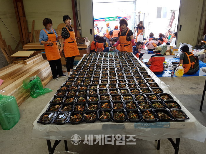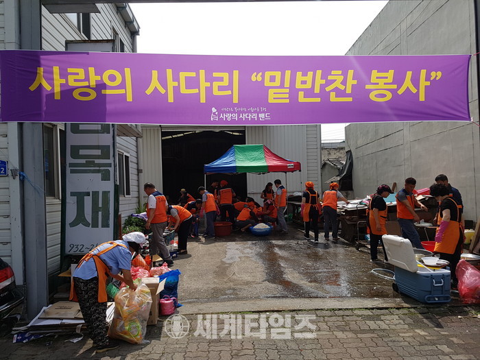 [대전=세계타임즈 이장성 기자] 5천명의 회원들이 활동하는 자발적인 SNS봉사 밴드인 사랑의 사다리 밴드(리더 이정제)는 9일 오전9시~오후1시까지 대덕구 석봉동 미림목재(대표 유희성)에서 밑반찬을 만들어 대전시에 거주하는 206명의 저소득층, 독거노인, 장애인 가정에 전달을 하면서 훈훈한 이웃사랑을 전했다.