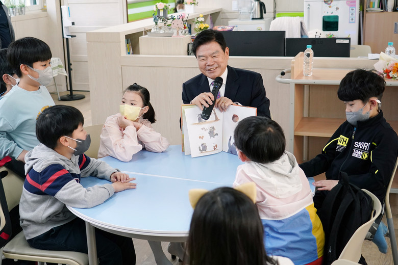 | ▲ 안평초등학교 '행복독서 책 읽어주기' 활동에 참석한 이필형 동대문구청장 |