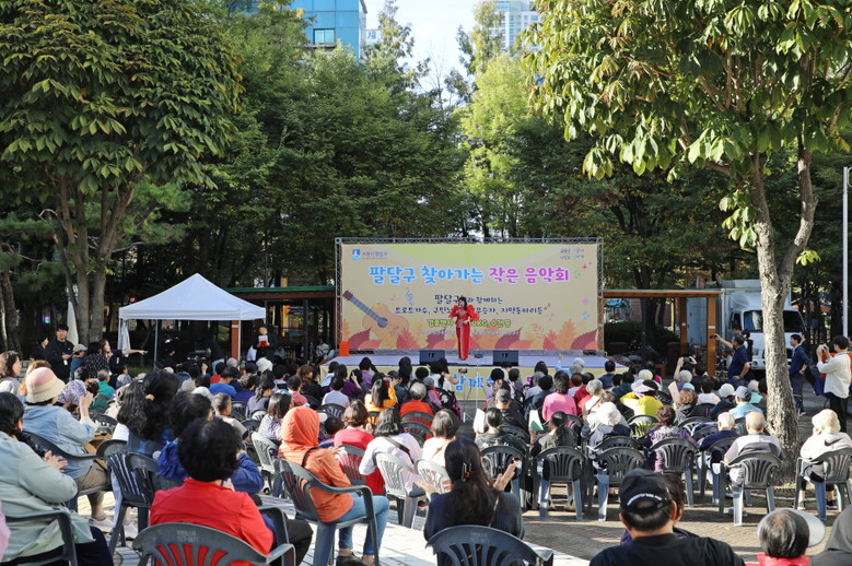 [수원시 세계타임즈=송민수 기자] 수원시 팔달구(구청장 이상균)는 지난 16일(목) 팔달구 화서2동 화서주공4단지에서 깊어가는 가을, 주민 화합과 여가 문화 증진을 위한 ‘찾아가는 작은 음악회’를 열었다.