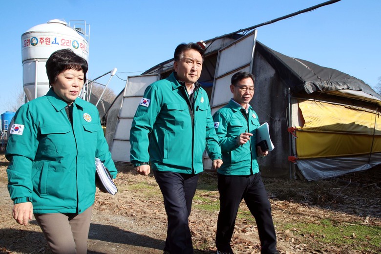 김영환 지사는 이날 시설하우스와 축사를 방문해 대설로 인한 피해의 심각성에 공감하며, 피해를 입은 주민을 만나 위로와 격려의 말을 전했다.