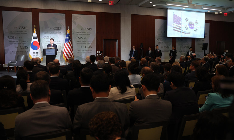 [세계타임즈 = 이채봉 기자] 미국을 방문 중인 이재명 대통령은 25일(현지시간) "오늘 도널드 트럼프 대통령과의 정상회담에서 한미동맹을 안보환경 변화에 발맞춰 현대화해 나가자는 데 뜻을 같이했다"고 말했다.이 대통령은 이날 미국 워싱턴DC의 싱크탱크 전략국제문제연구소(CSIS)에서 한 연설에서 "저와 트럼프 대통령은 '국익중심 실용동맹'의 새 지평을 열어가고자 한다"며 이같이 밝혔다.이번 회담의 핵심 의제로 꼽혔던 한미동맹 현대화는 주한미군의 규모·역할 변화부터 한국군의 역할 확대, 한국의 국방비 증액, 전시작전통제권 전환 등까지 다양한 쟁점을 포괄하는 개념이다.