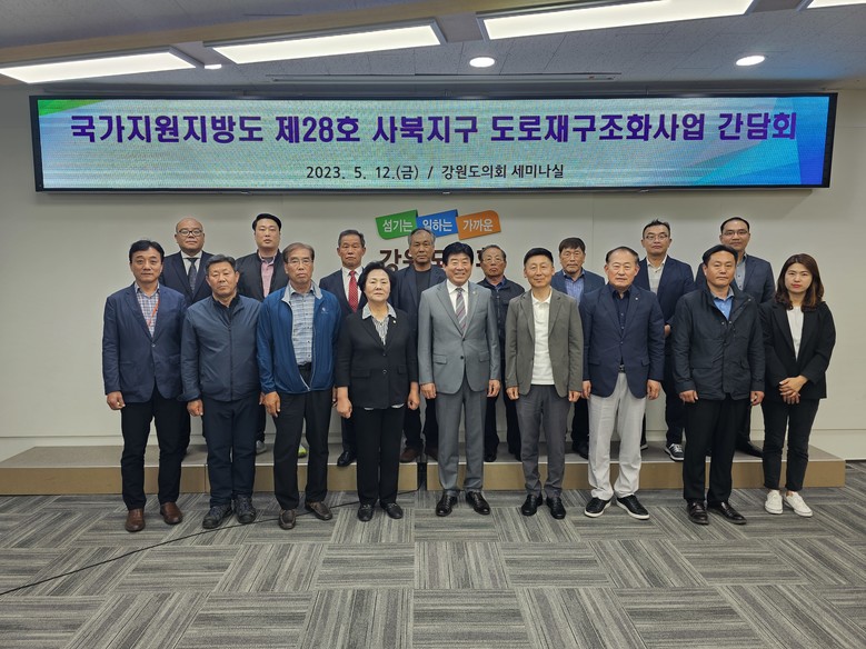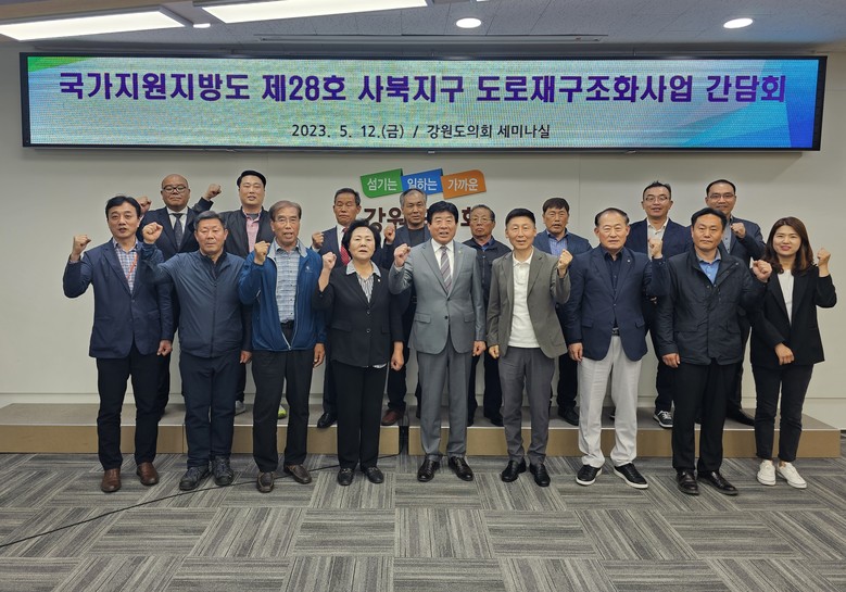 [강원도 세계타임즈=김민석 기자] 5월 12일(금) 강원도의회 세미나실에서 김기철 강원도의회 경제산업위원장 주재로 국가지원지방도 28호 사북지구 도로재구조화사업 간담회가 열렸다.