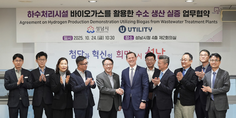 시는 이날 오전 10시 30분 시청 4층 제2회의실에서 미국 휴스턴 소재 수소 생산 기술 기업인 유틸리티 글로벌과 ‘하수처리시설 바이오가스를 활용한 수소 생산 실증사업에 관한 업무협약’을 했다.
