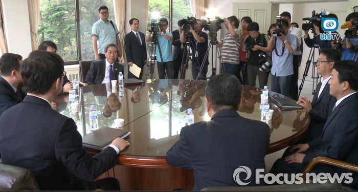 | △ 26일 개최되는 남북 당국회담 실무접촉 수석대표가 우리는 김기웅 통일부 남북회담본부장, 북측은 황철 조국평화통일위원회 서기국 부장으로 결정됐다. 사진은 2013년 6월 12일 남북당국회담을 위한 실무접촉 모습. 2013.06.12, <사진출처=통일부 UniTV 화면캡처> |