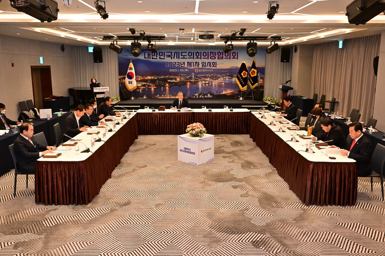 울산시의회에 따르면 대한민국시도의회의장협의회 2023년 제1차 임시회가 26일 오후 3시30분 북구 ″머큐어앰배서더 울산호텔″에서 전국시도의회 의장들이 모인 가운데 지방시대를 열기위한 시도의회 공동 현안사항 해결과 자치분권 실현 방안에 대해 심도 있는 논의를 하였다.