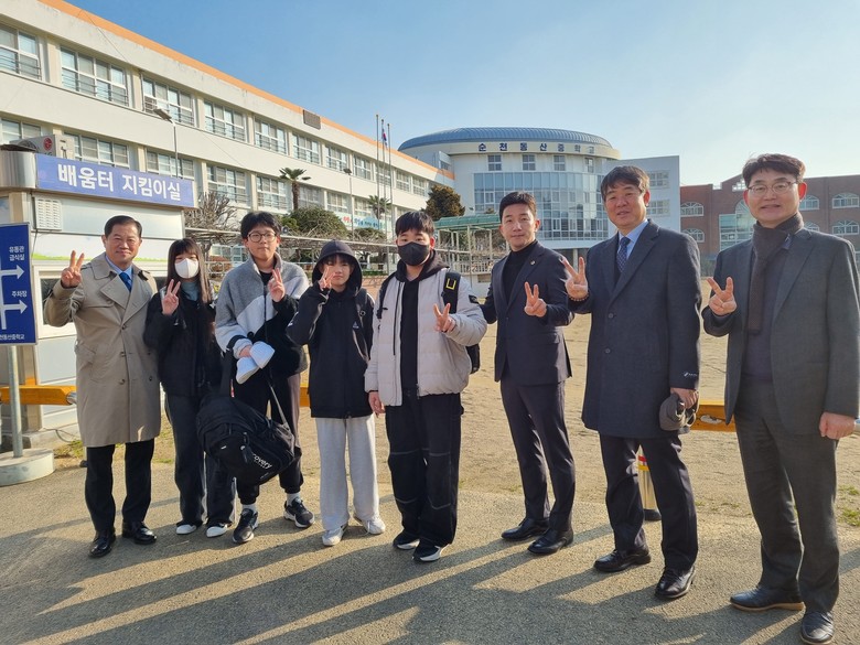 | ▲ 김진남 의원(오른쪽 세 번째)이 지난 8일 순천동산중학교에 방문했다 |
